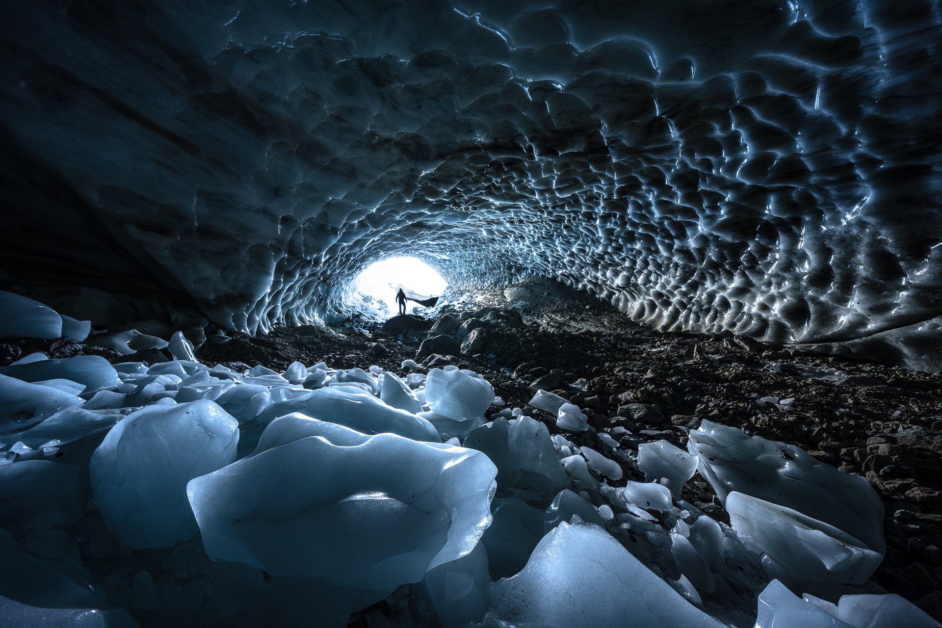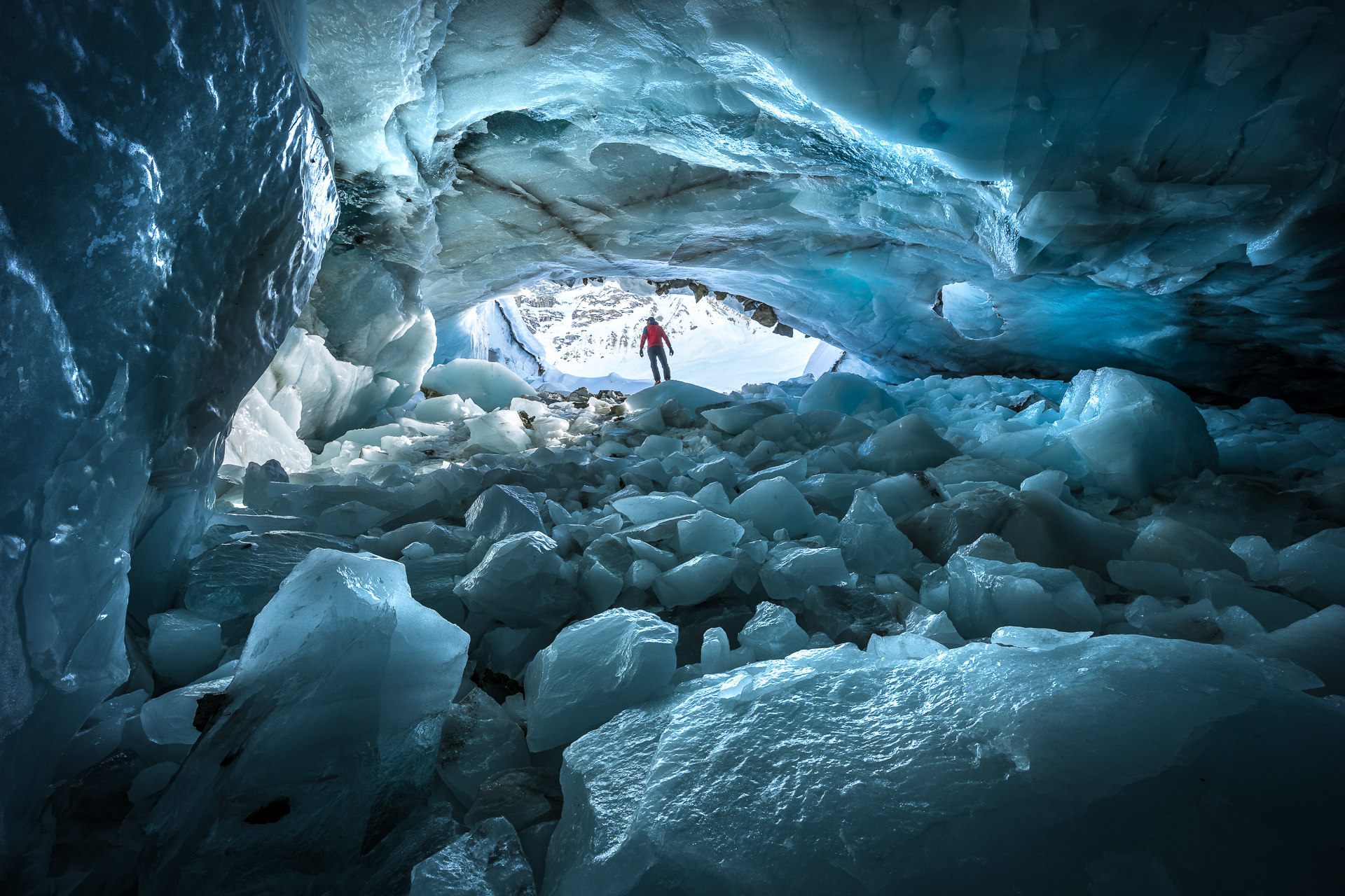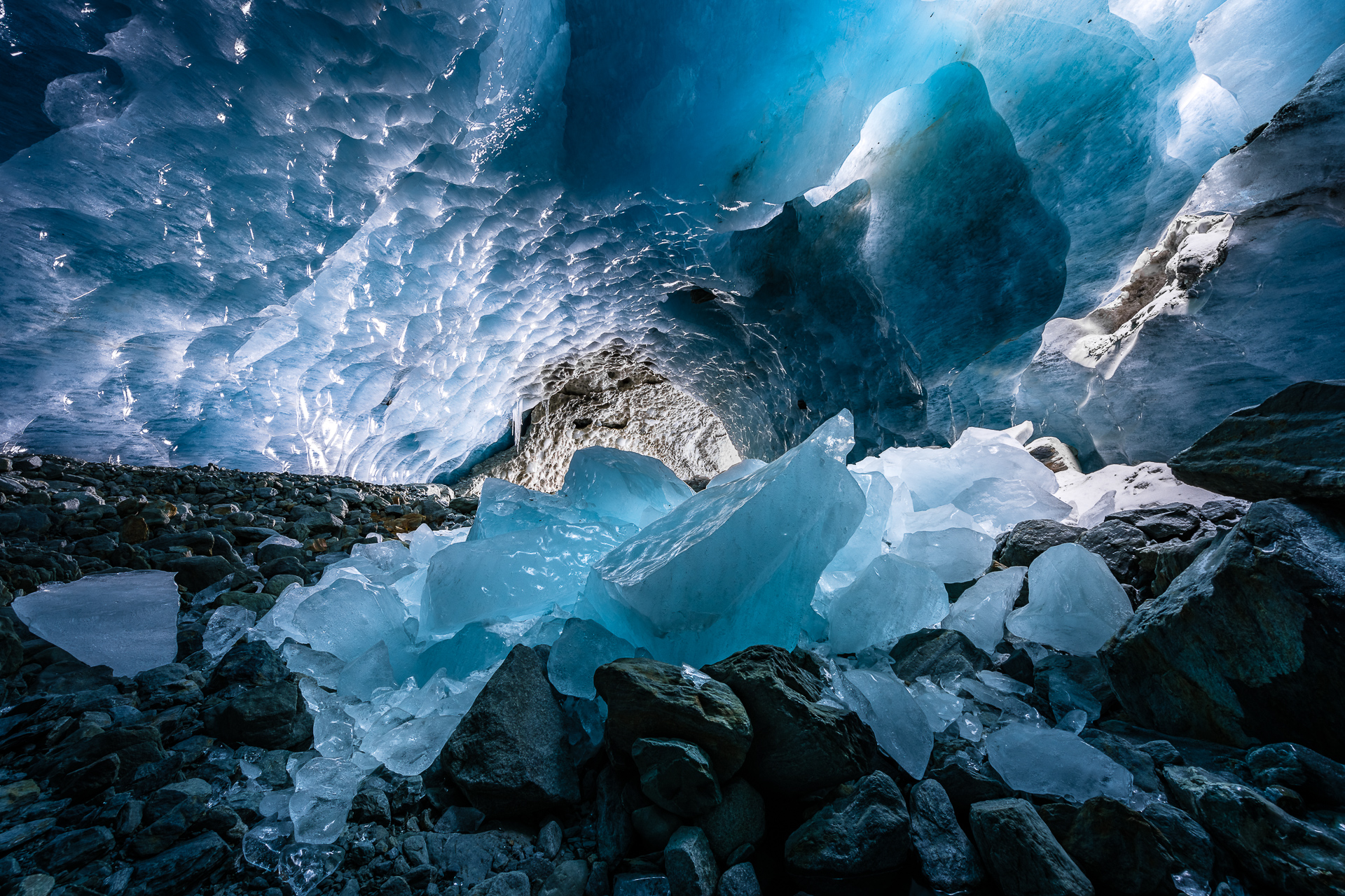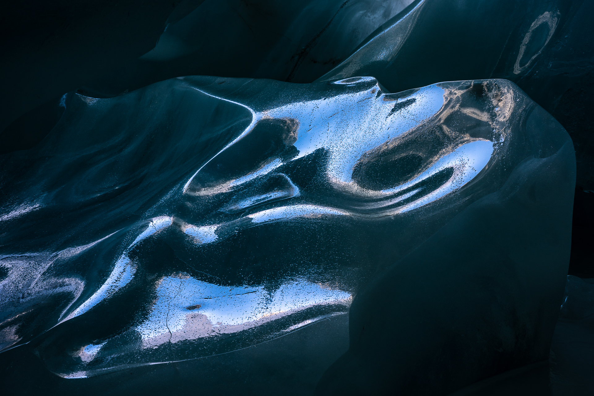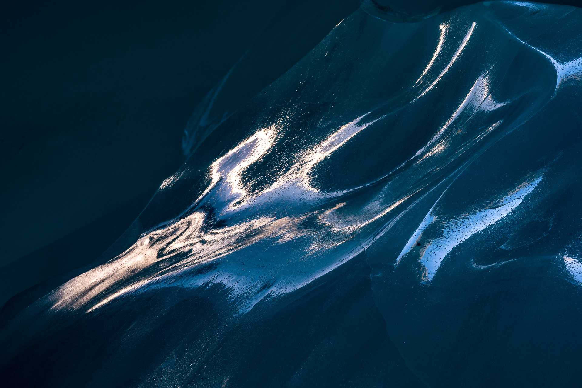 Die Zeit scheint still zu stehen. Um mich herum glitzert tausendjähriges Eis in den schönsten Blautönen. Ich lasse meine Hand übers speckige Eis gleiten und halte inne. Immer wieder entdeckt man hier neue Muster im Eis.