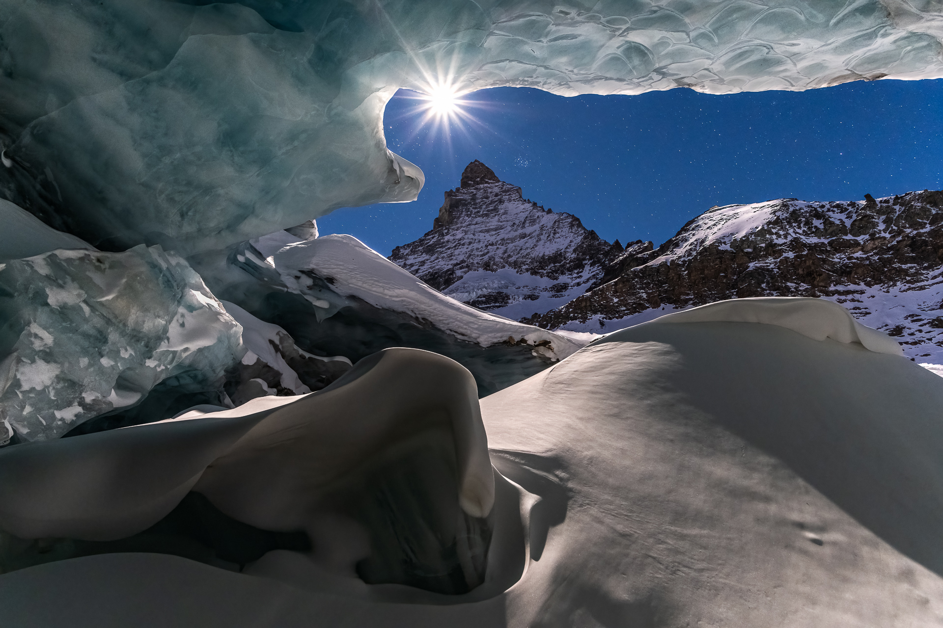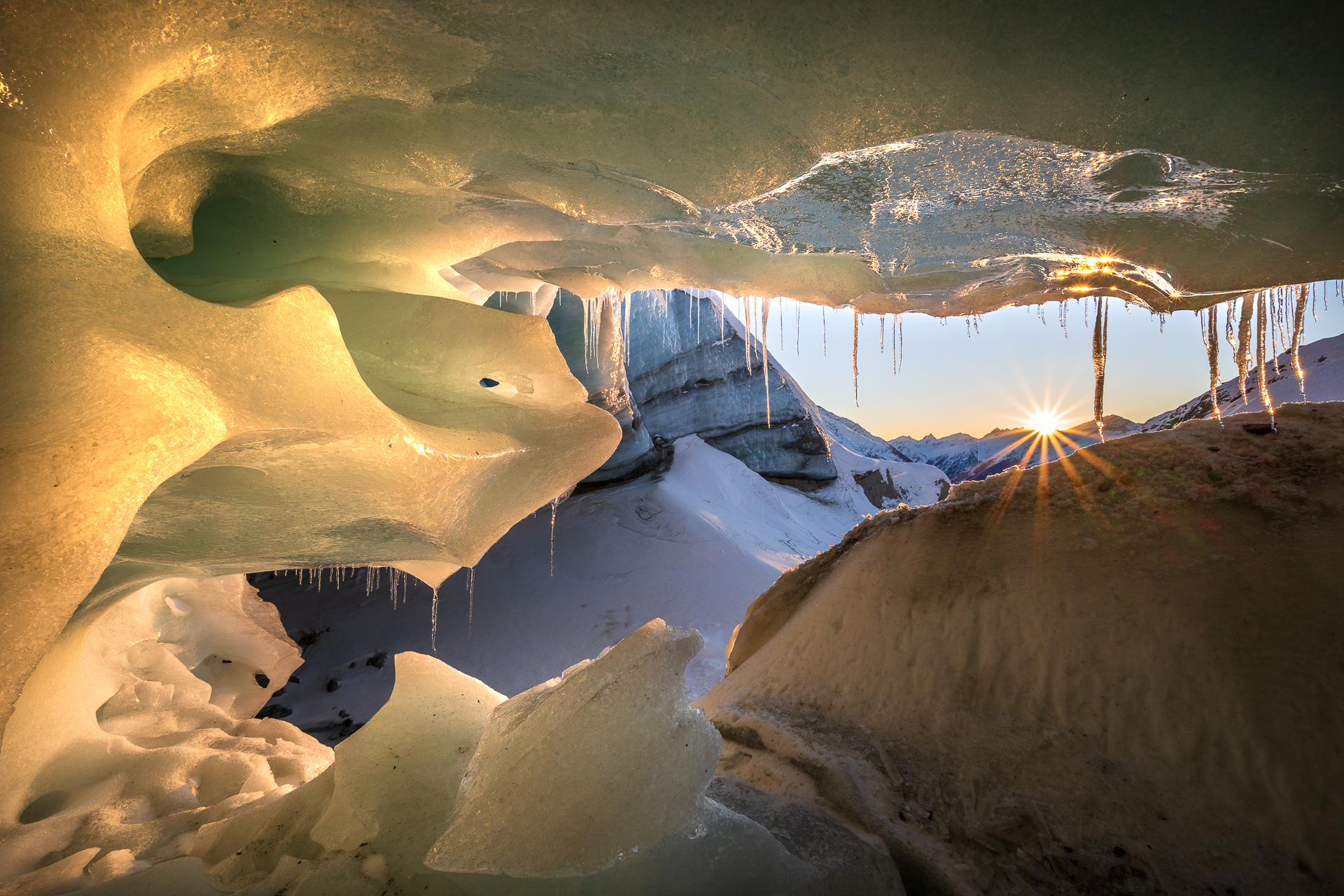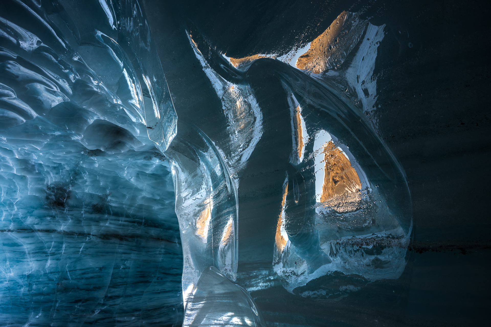 Soviel Schönheit aufs Mal. Manchmal bin ich damit schlicht überfordert. Weiss nicht mehr, wohin ich schauen soll. Dann mache ich meine Augen zu und lausche: Da ein Knacken, dort ein feines Plätschern. Und der laue Luftzug, der fortwährend durch den Eispalast strömt.